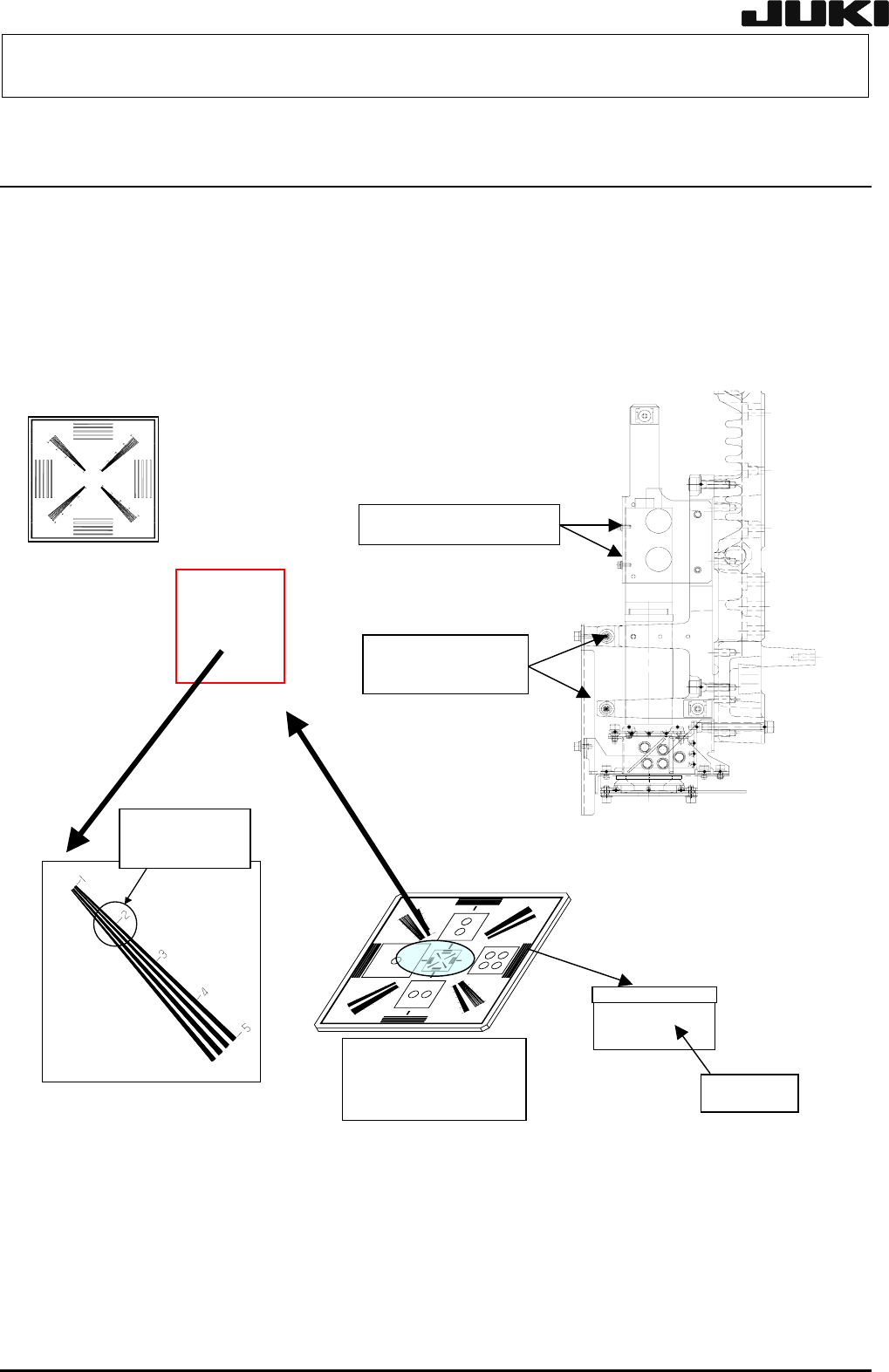 保养调整说明书 4-5 Rev. 2.00 4-5 焦距调整 <顺序> ① 在 CAL 块上表面放置摄像头调整器具并使刻度面朝下。 ② 拧松固定摄像头的内六 角螺栓①和②共六处并 上下移动摄像头, 在能清楚看到刻度线[2]参照下图 的高度处固定摄像头。 CAL 块 ①带垫片内六角 螺钉(×2) ①内六角螺栓(×4) カメ ラ アジャ ス ト 治 具 E 2106998000 (T110) 摄像头调整器具 E210699800…