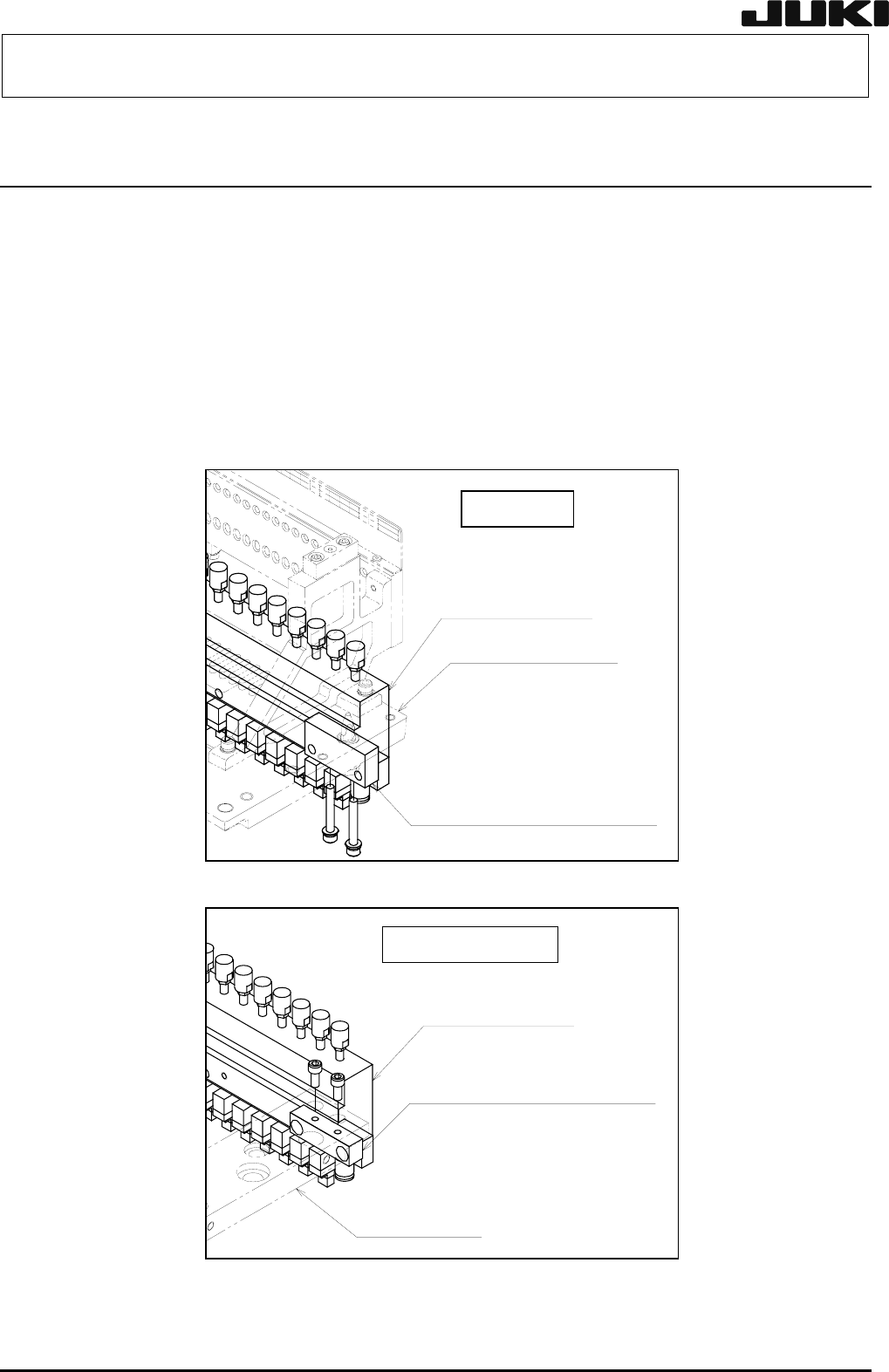 保养调整说明书 5) 更换新的驱动气缸,按图 8-2-3 的相反位置进行安装。 <注意> 在桌子的平面或供料器上面进行操作。 驱动器支架支撑 A 驱动气缸 驱动器支架 标准式样 图 8-2-3 驱动器支架支撑 B 驱动气缸 驱动器支架 一次更换台式样 图 8-2-4 8-3 Rev. 2.00