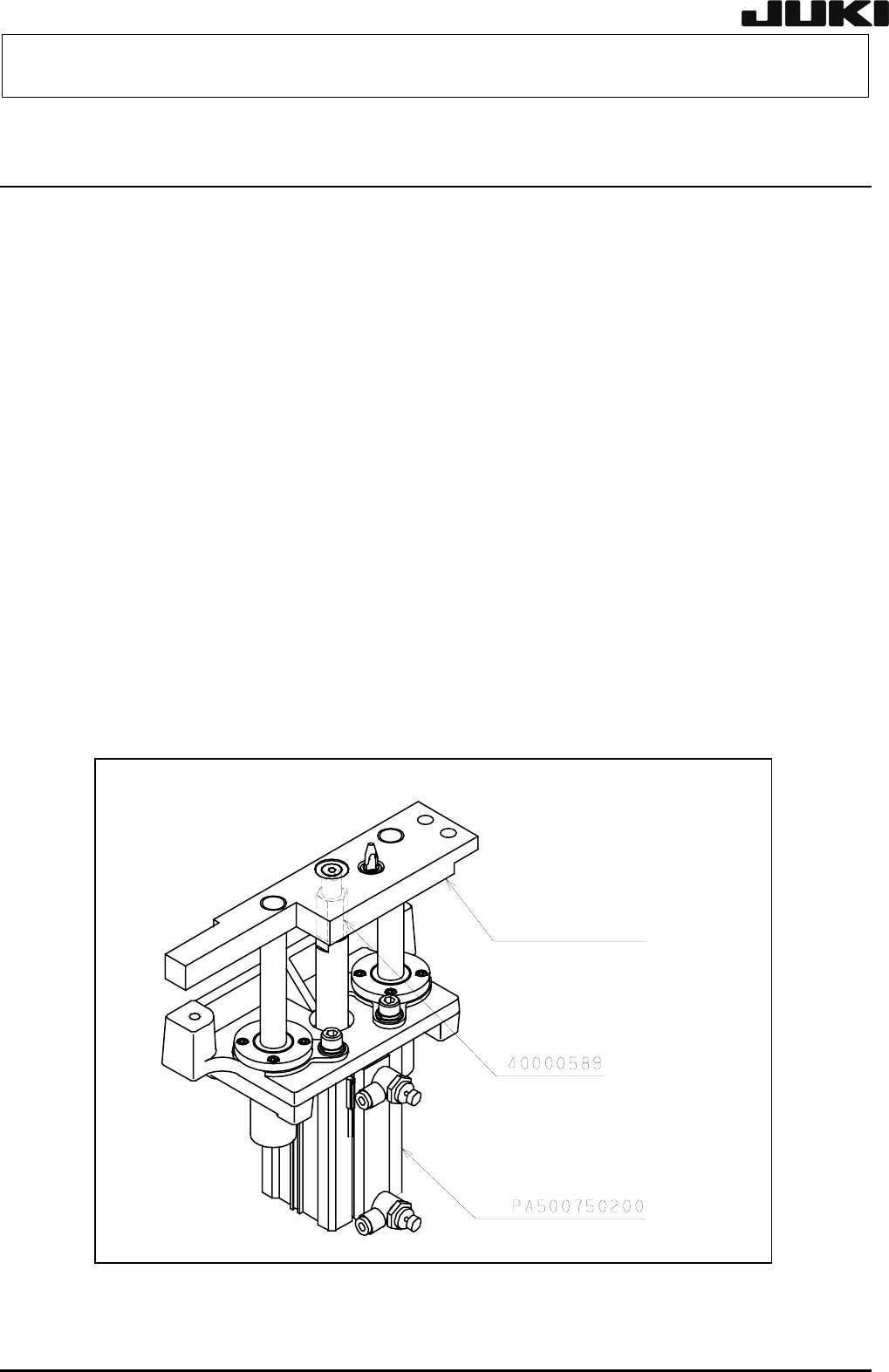保养调整说明书 8-5 供料器上升气缸的更换 1) 关闭主机电源。 2) 选择 ON,左右的滚子控制杆 ON,并使供料升降器上升。 3) 松开气缸连杆与升降气缸轴并取下。(更换侧) 4) 关闭主机空气压。(手动阀) 5) 卸下驱动气缸组的安装螺栓。(左右两方) 6) 从速度控制器上拔下空气管,卸下气缸连杆。(更换侧) 7) 使供料升降器上升,卸下气缸安装螺栓 4 枚,取下气缸。 8) 速度控制器与新的气缸相连接。 9) 安装气缸。 10…
