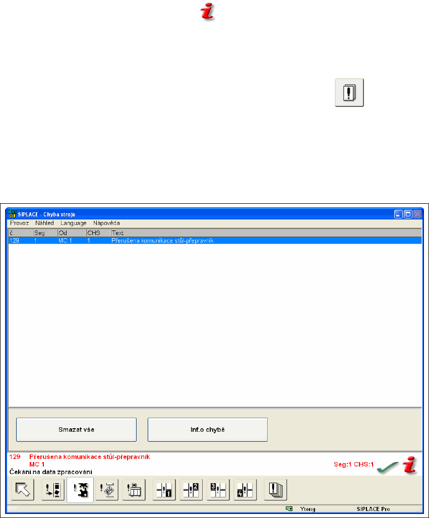 SIPLACE Návod pro software SR 604.xx 5 Úkoly na lince SIPLACE Vydání 06/2007 CZ 5.3 Zpracování informací o chyb ě 57 Æ Klikn ě te na tla č ítko Informace o chyb ě . Hlavní ok no Systému nápov ě dy s informacemi o aktuáln…