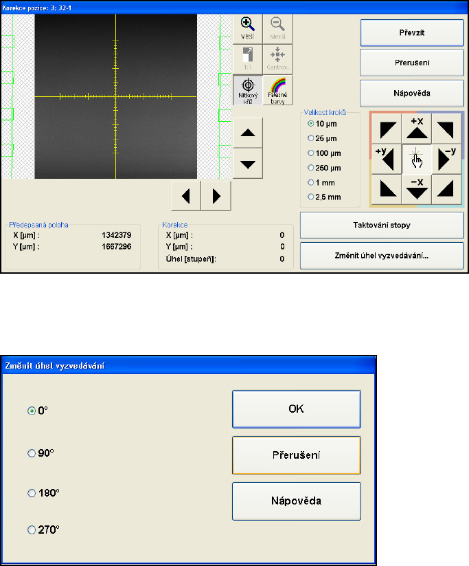Æ Klikněte na "Změnit úhel vyzvedávání". Objeví se následující dialog.