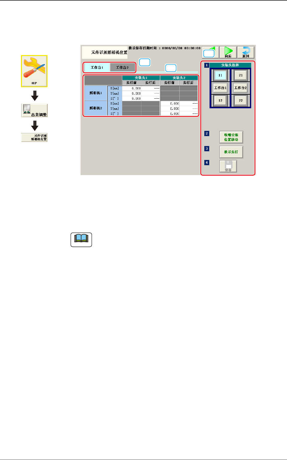 进行元件识别照相机补正值 (X 横、Y 纵、Z 角度 ) 的教示。