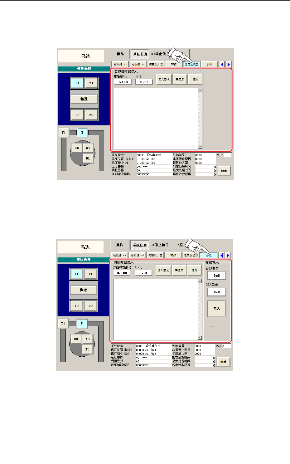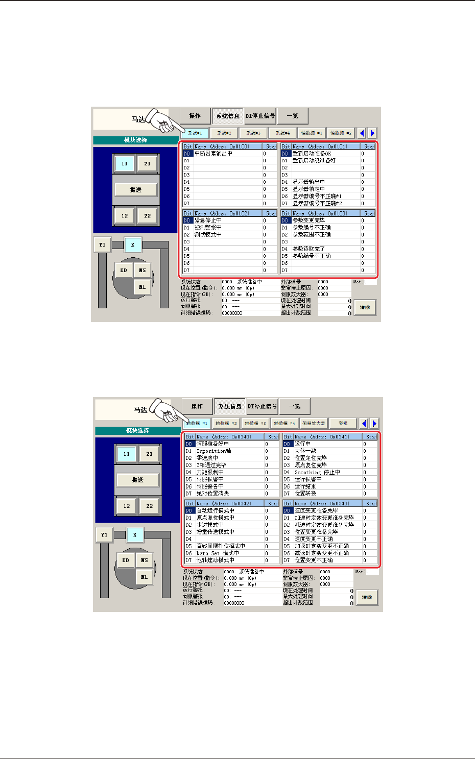 3OM-1732 1-6-1 1 (3) 伺服放大器 在 “ 系统信息 ” 界面,按下 [ 伺服放大器 ] 按钮,便显示 “ 伺服 放大器 ” 界面。 Fig.3A6-13 (4) 警报 在 “ 系统信息 ” 界面,按下 [ 警报 ] 按钮,便显示 “ 警报 ” 界面。 Fig.3A6-14 1206-001 6.2马达