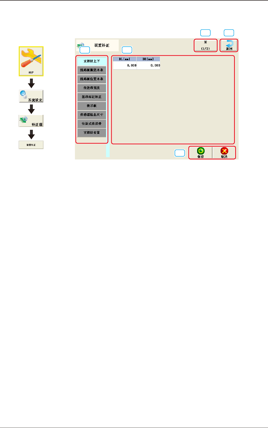 3OM-1732 2-2-2 补正值数据分为以下界面,按下 Tab,便显示各选项卡。 Table3B2-1 Tab 内 容 装置补正 ( 补正值 ) 调整从线路板定位 XY 坐标看到的对 XY 横梁驱动 XY 标的设定尺寸 的位置偏离以及角度偏离。 送料器安装台 分别调整各送料器安装台设计值的偏离量。 送料器 A 用装置固有的补正值数据调整从线路板定位 XY 坐标看到的各送料 器编号的送料器对吸取位置及高度的设计尺寸的位置偏离。 送料…