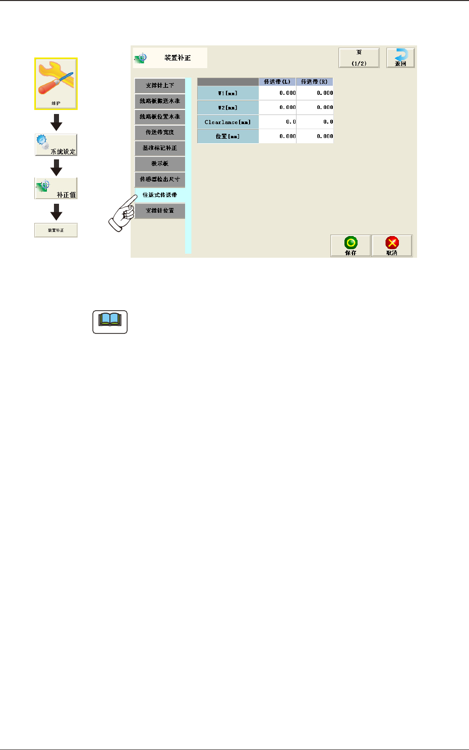 3OM-1732 2-2-1 1 2.1.7 传感器 ( 线性传感器 ) 检出尺寸 [1] Fig.3B2-11 [1] 安装头 1、2 用各安装头的线性传感器设定灰尘污垢检出扫描数。 界面展开 1209-002 2.1装置补正 ( 补正值 )