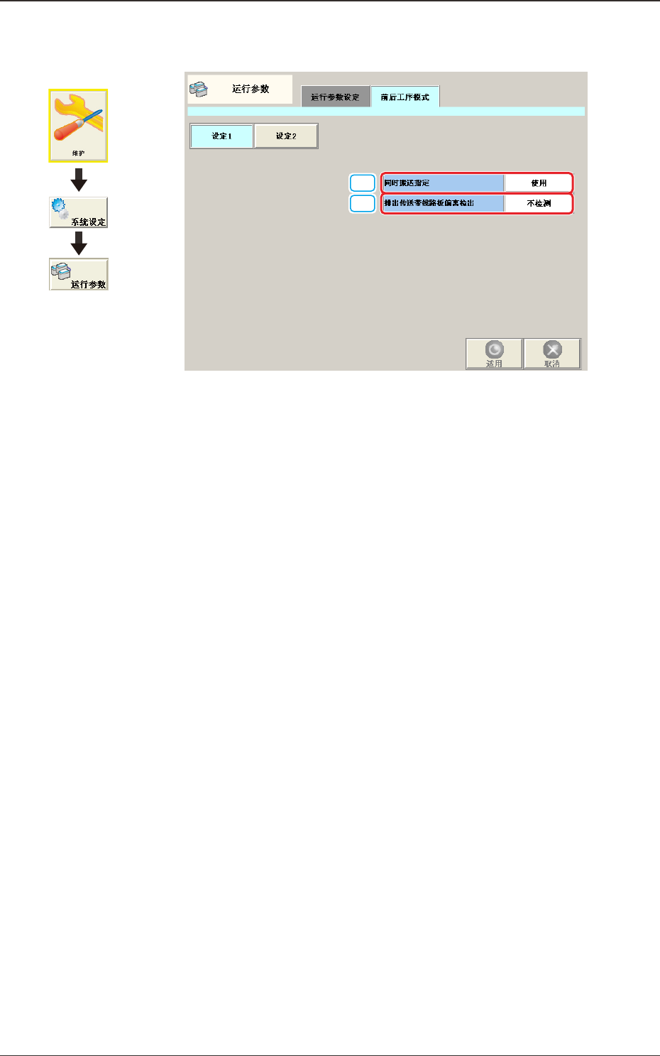 设定与后工序装置的线路板输送。