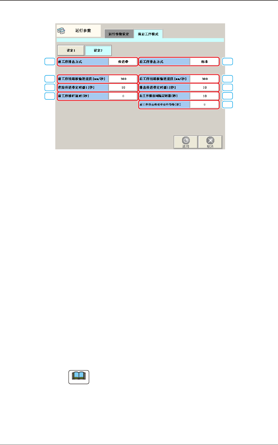 设定后工序与线路板授受中排出传送带的动作限制时间。