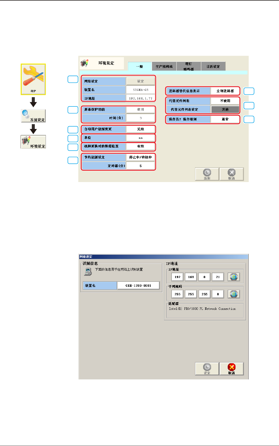 3OM-1732 2-4-1 4. 环境设定 4.1 一 般 [1] [2] [3] [5] [4] [6] [7] [8] [9] Fig.3B4-1 [1] 网络设定 [ 设定 ] 按钮 显示 “ 网络设定 ” 界面。 Fig.3B4-2 界面展开 1206-001 4. 环境设定