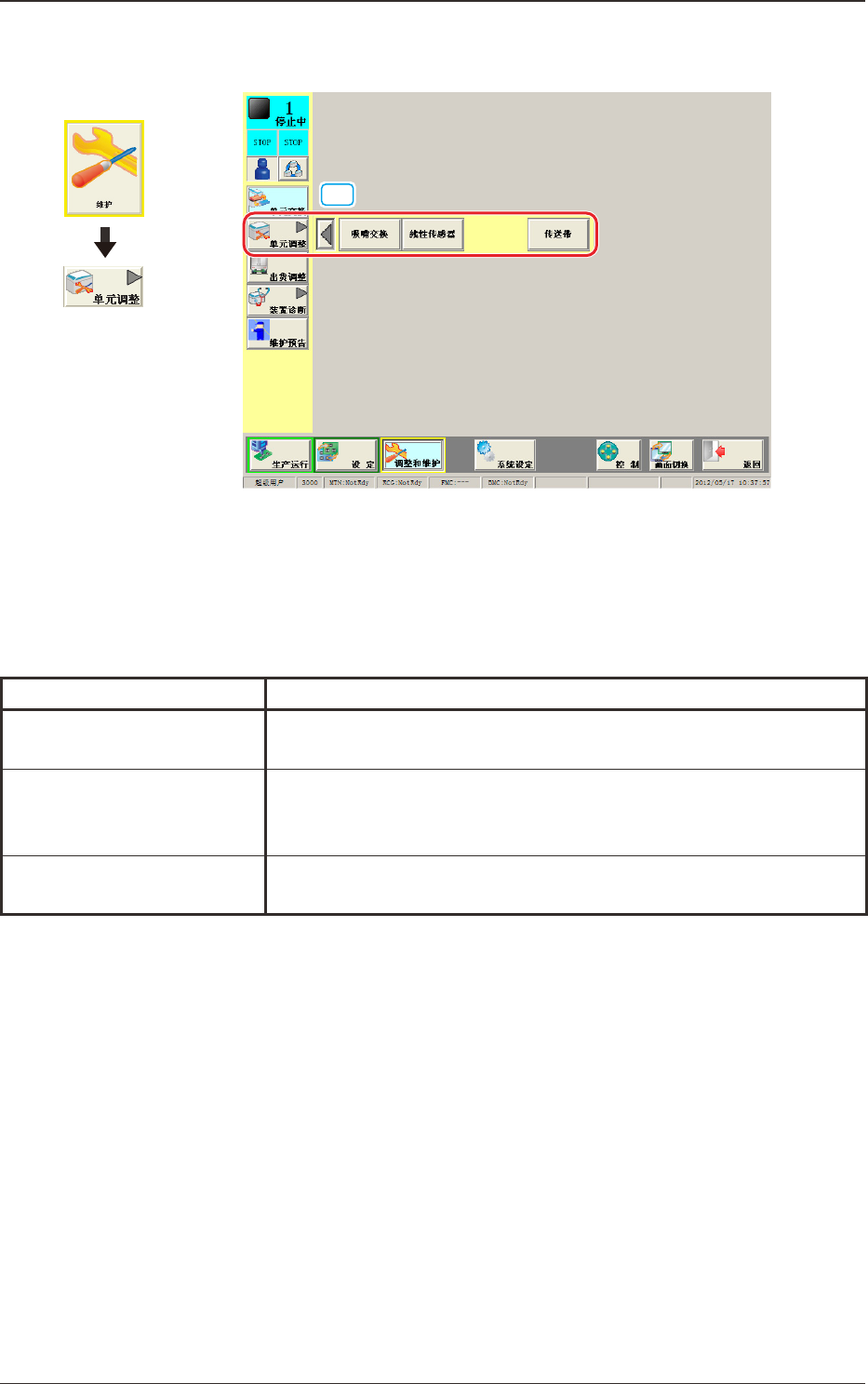 为显示实行单元调整各功能的操作界面,配置有以下按钮。