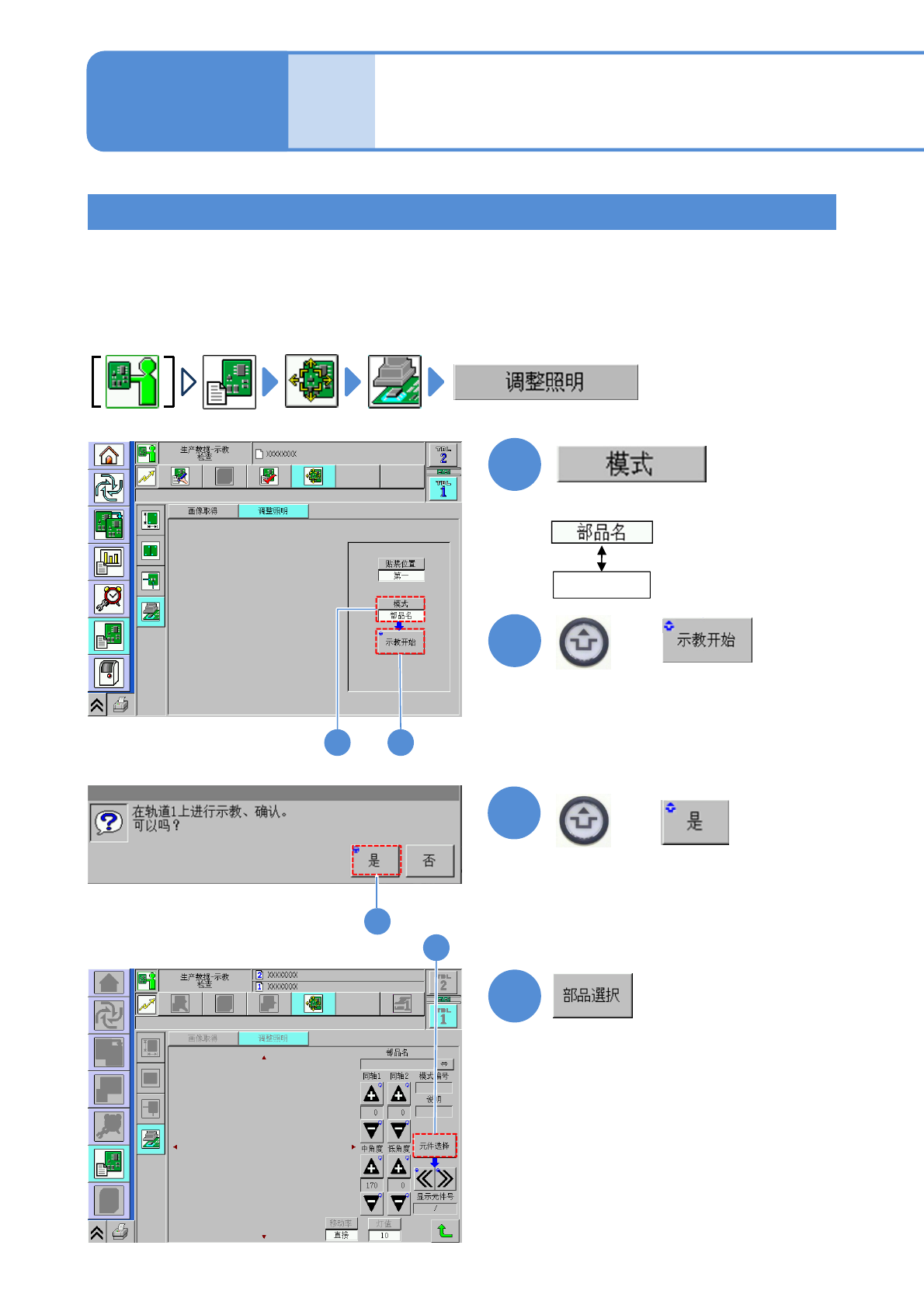 NPM-W 2 EJM7DC-MB-04O-03 4-3-2 -8 2 选择元件名称 2 3 + (检查头移动至选择的元件位置) 4 ●变更同轴 1 /同轴 2 /中角度/低角 度 的各照明値,调整到适合检查的图像 状态。 5 + ( 检查头移动至相同名称元件其他的元件 位置 ) ●其他元件时,也希望确认图像时使 用。 ●变更各照明值,同时确认是否适合 检查 状态的画面。 ●调整的照明条件适用于检查条件时 ,记 录调整值。 3 4 5 …