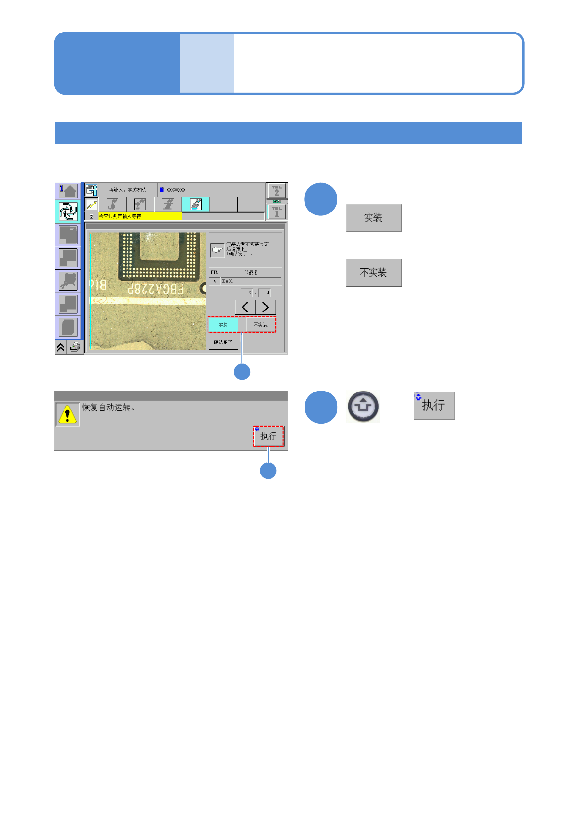 再投入时以下确认画面显示时,请设定贴装或不贴装后继续生产。