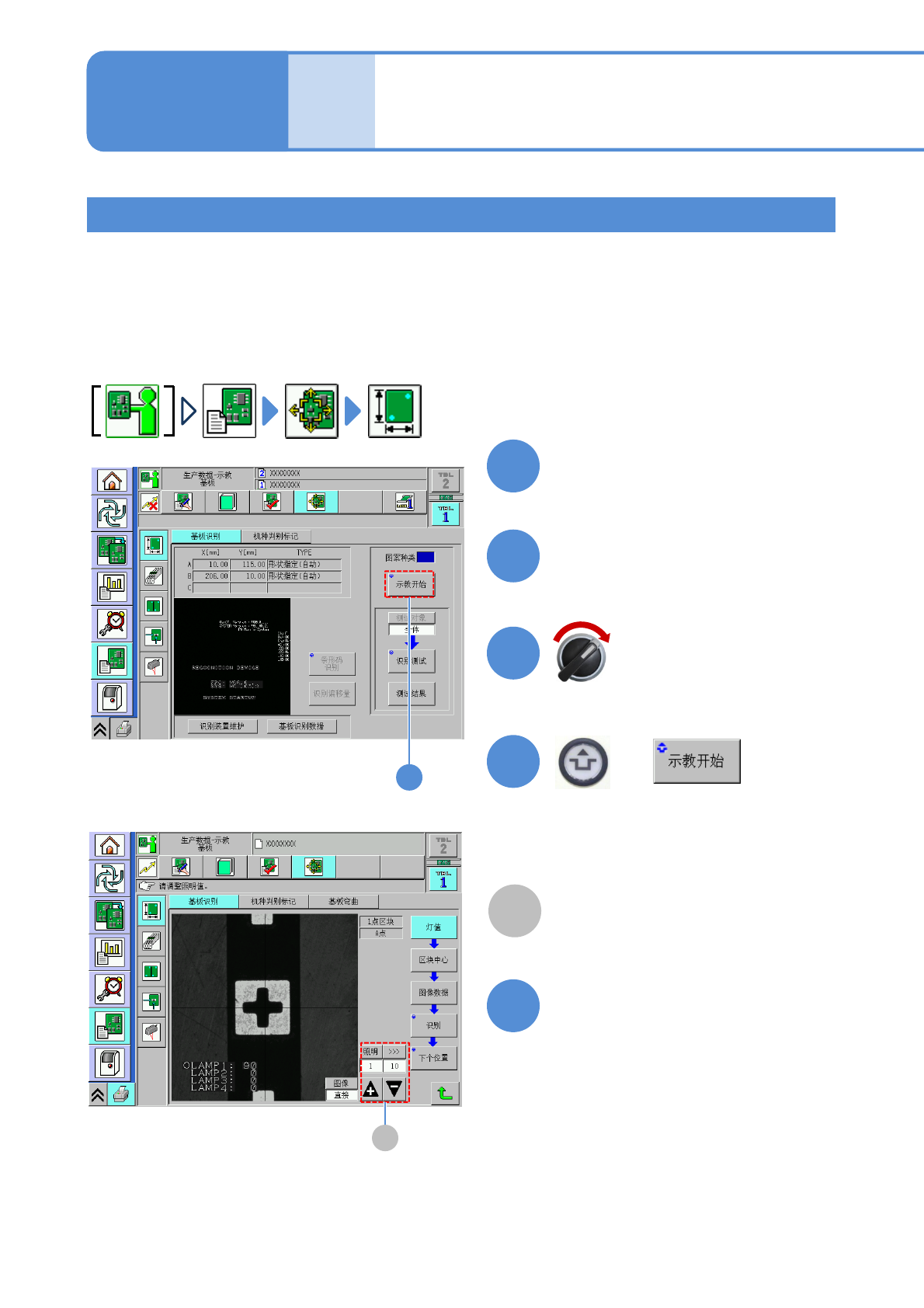 NPM-W 2 EJM7DC-MB-06O-06 生产数据 校正 基板识别校正 4 操作篇 6-2-2 6-2-2 -7 1 2 3 + 4 4 5 A A 区块匹配 1 当识别对象 ( 标记 ) 属于复杂形状,且轮廓不清晰或识别对象 过大而无法收容进识别画面内等时 ,使用本功能。 另外,当使用本功能时,请在 DGS 下, 将基板识别标记的形状类型设定为 1 点区块。 至于是否设定了 1 点区块,可在基板识别数据 画面、基板识别校正画面…