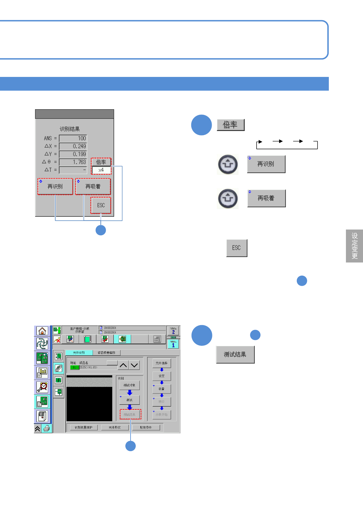 NPM-W 2 EJM7DC-MB-06O-06 生产数据 校正 操作篇 6-2-4 元件识别校正 4 元件识别校正 5 6-2-4 -9 17 选择识别方法 ■ 1 次识别时 ■ 10 次识别时 ■不选择识别方法时 18 + 18 17 ■识别托盘元件时 ■对从选择地址到最终地址的全部元 件都 进行识别时 ■从选择地址到最终地址,对没有元 件校正 实绩的全部元件都进行识别时