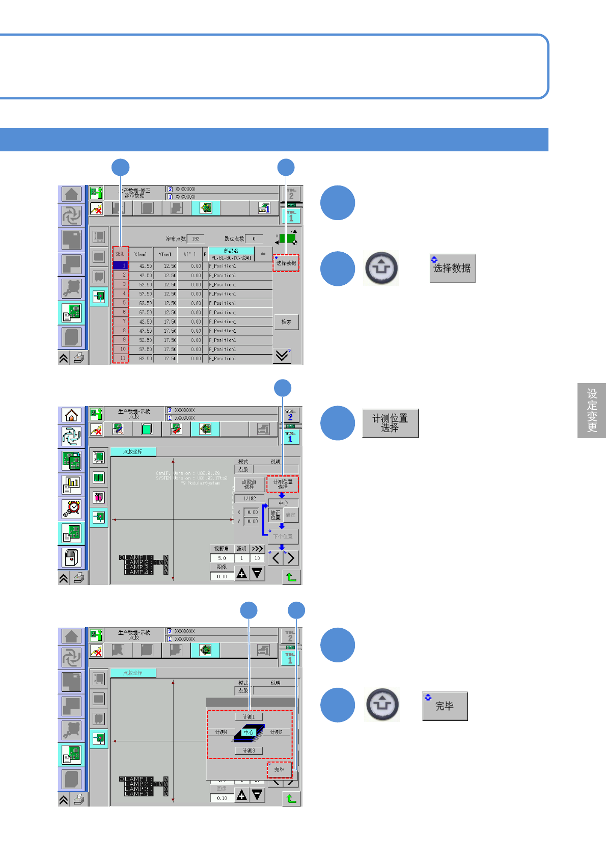 NPM-W 2 EJM7DC-MB-06O-06 + 生产数据 校正 6-2-13 -5 点胶坐标校正 3 操作篇 6-2-13 ■偏位时 10 + 12 调整照明值 A X/Y 显示位置调整后的微调量。 B 切换识别图像的视野尺寸。 C 切换位置调整的微调量。 11 13 编制步骤 2 10 11 C B A 13 12
