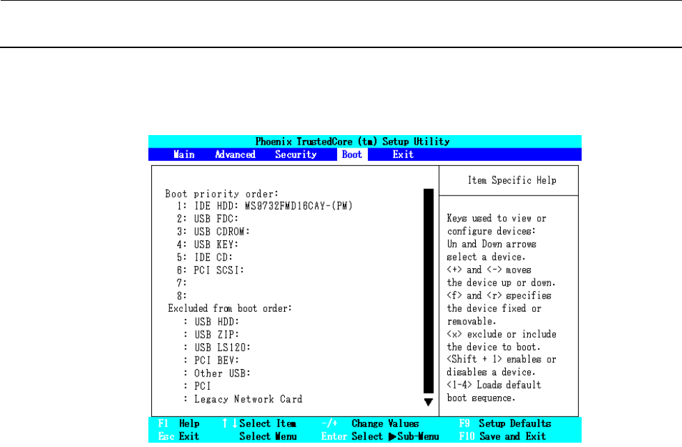 (2) 怎样从“Excluded from boot order:”移动到“Boot priority order:”