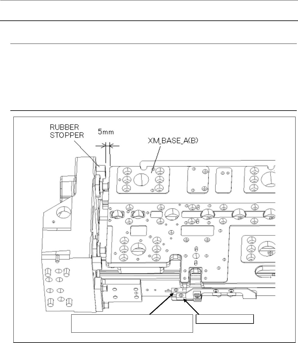 1) 若各个 RUBBER STOPPER 和 XM BASE A(或 B)的距离为 5mm 的话,进行调整使各个 LIMIT