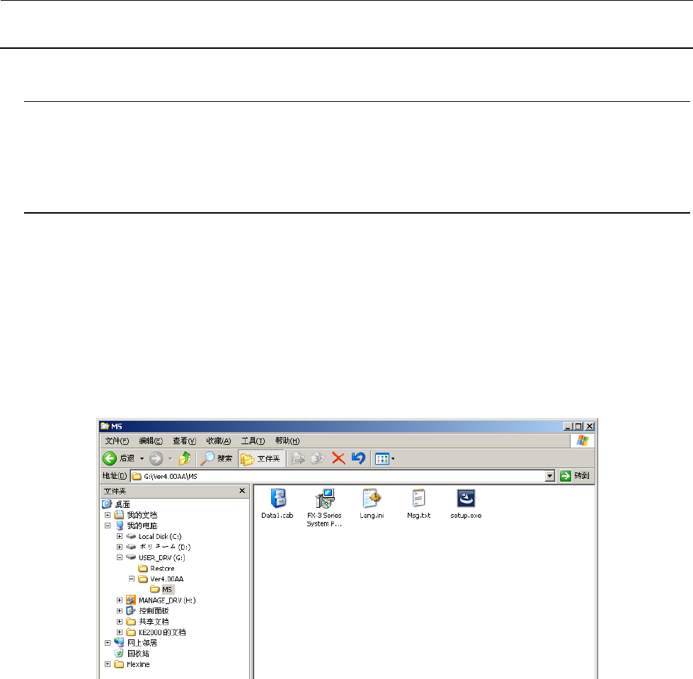 维修调整要领书 12 - 20 12 -2- 4 . FX -3 R 系统程序和 Flexline DB 的安装 FX -3R 的系统盘,由 KE2000 主机系统盘和 Flexline DB 系统盘构成。 安装时,请以系统程序、 Flexline DB 的顺序进行。 12 -2- 4- 1. FX - 3R 系列系统程序的安装方法 1 ) 请准备好装有系统程序安装文件的 USB 存储器等。 2 ) 按 Windows 的开始按钮,从开…