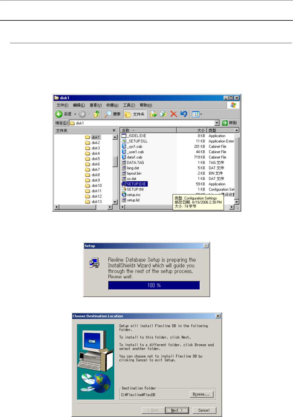 3) 从第 1)步中准备好的 Flexline DB 安装盘中选择 Setup.exe。