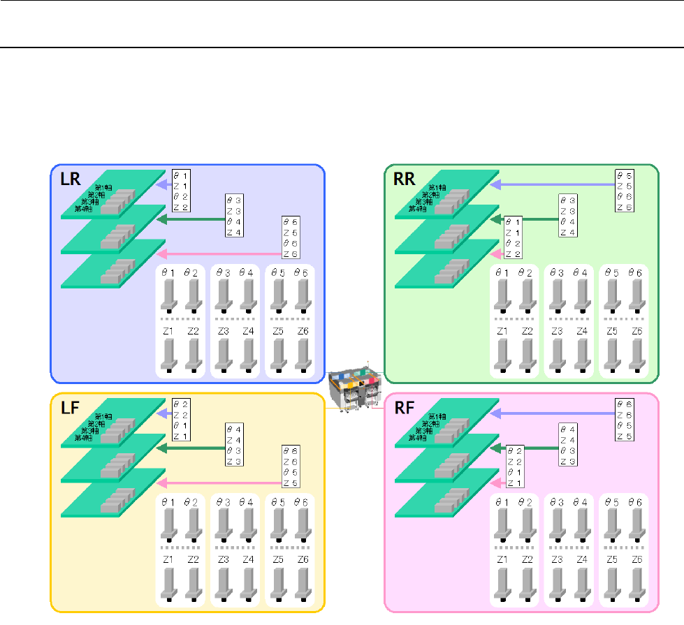 维修调整要领书 2-5 【与 ZT 驱动器电路板连接的 θ 电动机电缆连接器的连接位置】 ※ 各连接器以贴装头№记述。 ※ θ电动机电源电缆和θ电动机编码器电缆请参照下图分别连接。 图 2 -1- 1 从软件上看到的 Z/ θ驱动器和电动机配置关系图