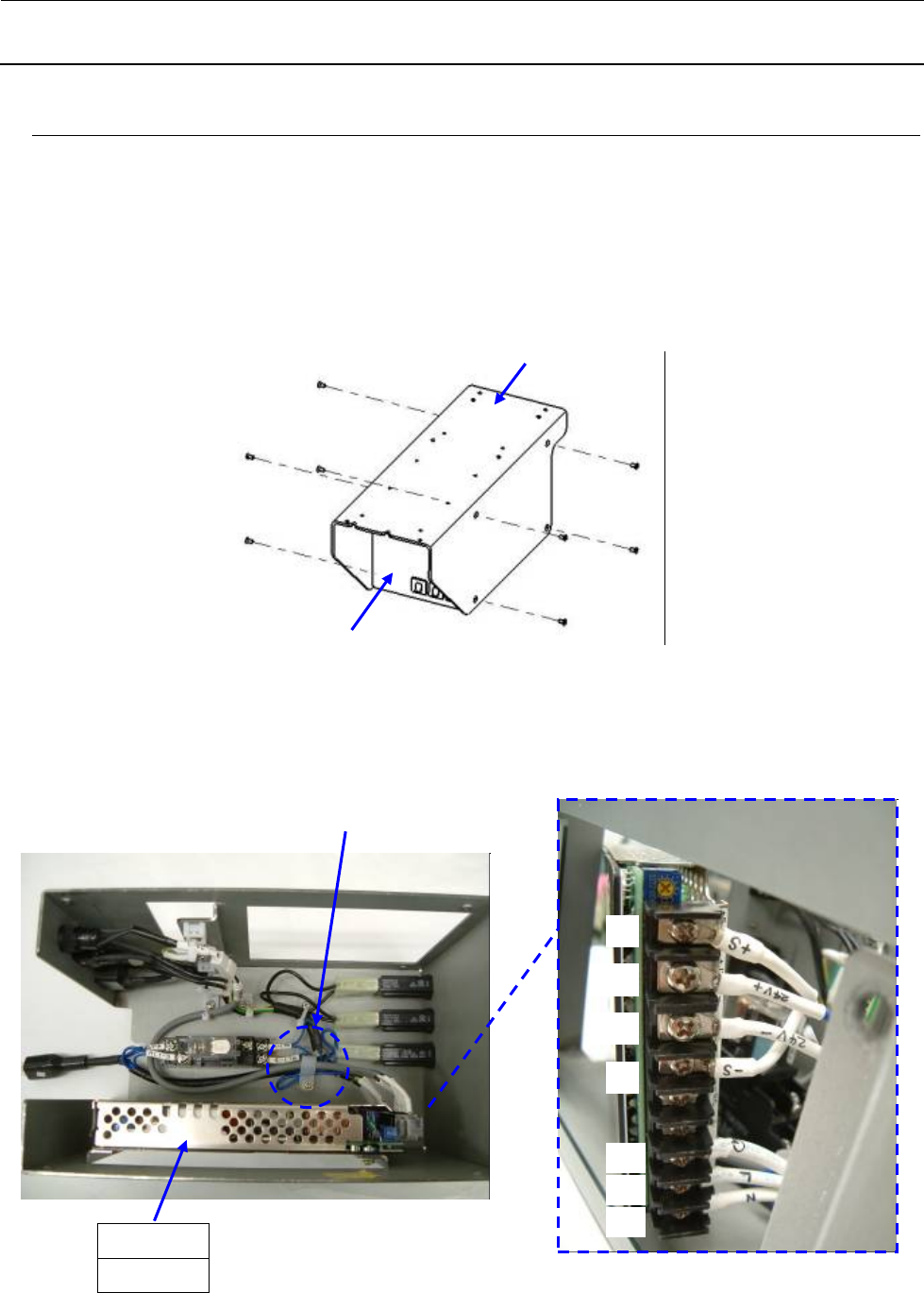 4) 请按下图所示利用电源装置底座侧面的开口部从电源中取下端子后进行更换。