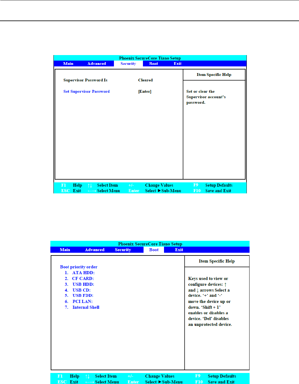 FX -3RA 维修调整要领书 12 - 13 11) Security 菜单 请确认设定如下图所示。 图 12 - 2-2 -2- 11 Security 12) Boot 菜单 请确认设定如下图所示。 图 12 - 2-2 -2- 12 Boot