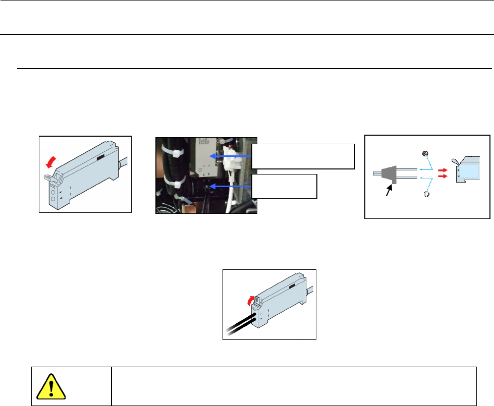 3) 板起单操作锁定杆。请确认光纤不会脱出。