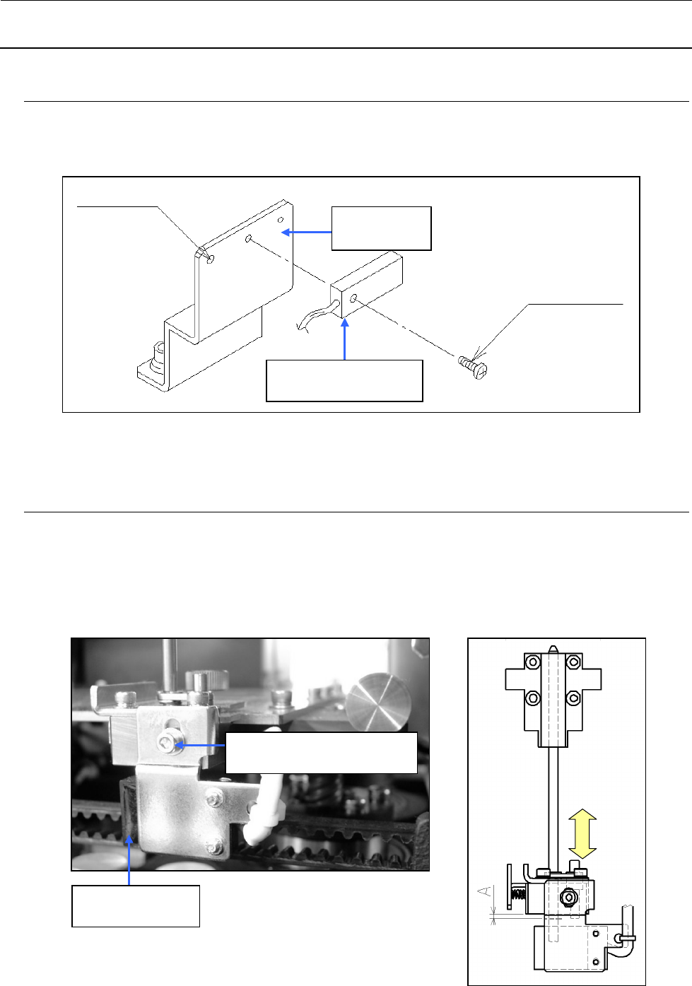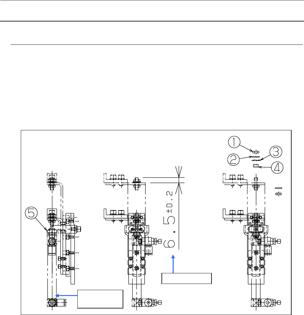 维修调整要领书 5- 10 5-7 . 支撑台原点传感器( BU 原点传感器)的更换 1 ) 从三传感器架卸下传感器。 2 ) 把传感器和传感器配件之间的距离调整为 1 mm。 图 5 -7- 1 BU 原点传感器 5-8 . T- PI N 传感器的更换(选购品) 1 ) 卸下调整螺丝,卸下传感器架,更换传感器。 安装时,把中心销只下降 1.5 - 0 0 .5 mm的状态下,拧松调节螺丝上下移动传感器架把T ・ PIN传 感器调整到…