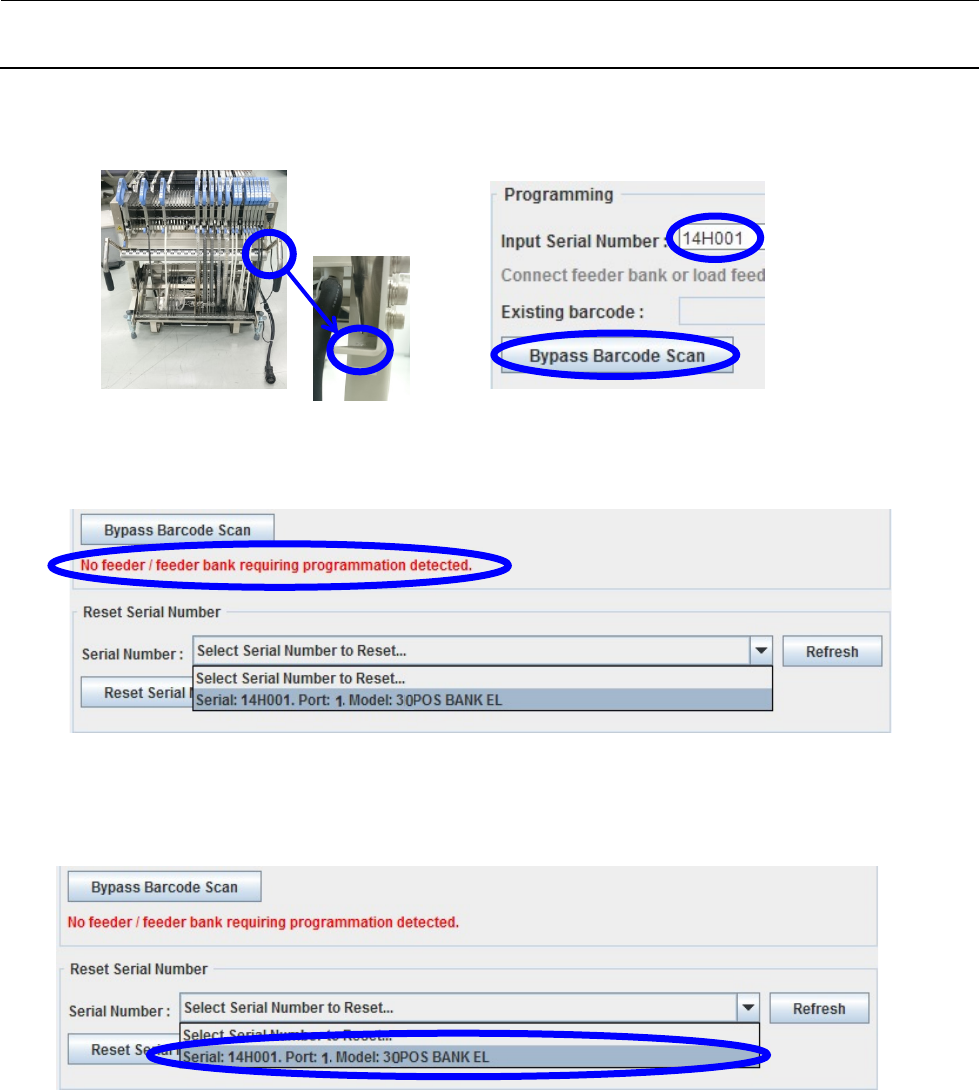 确认①台架的序列 No。输入确认的序列 No,按下「Bypass Barcode Scan」。