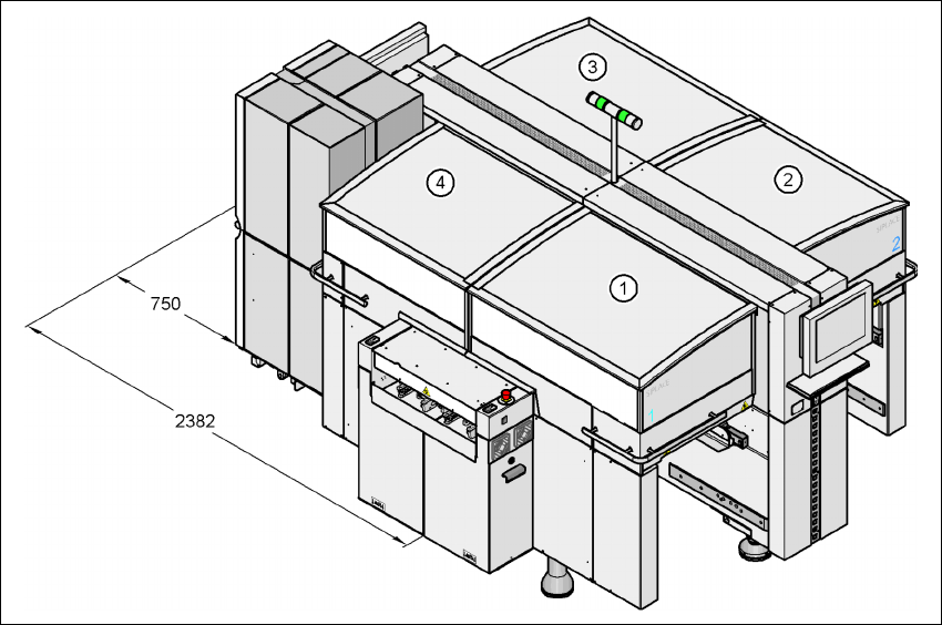 3.4.11 Dimensions of the HF/3 placement system with matrix tray changer
