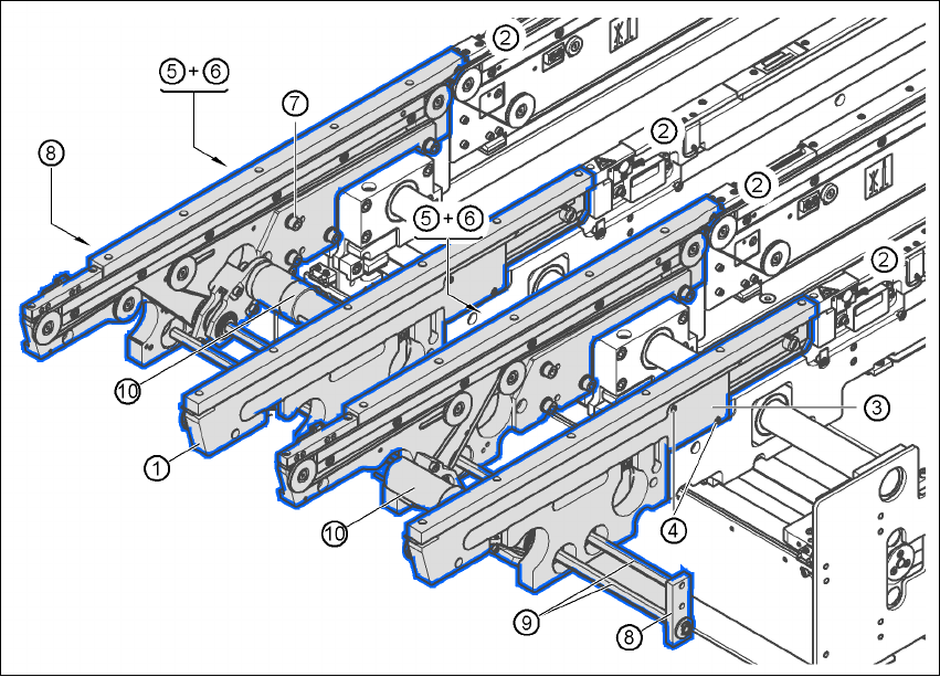 4.4.5 Fitting the extension kits to the machine frame