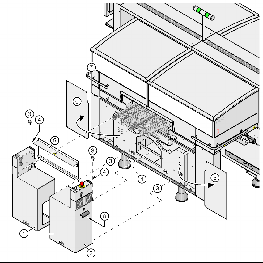 Æ Carefully place the panel (item 1 in Fig. 4.4 - 7) against the panel on the processing conveyor
