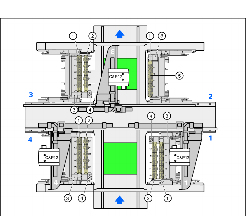 1 or 2 nozzle changers may be installed at locations 1, 3, and 4 for the 12 segment Collect&Place