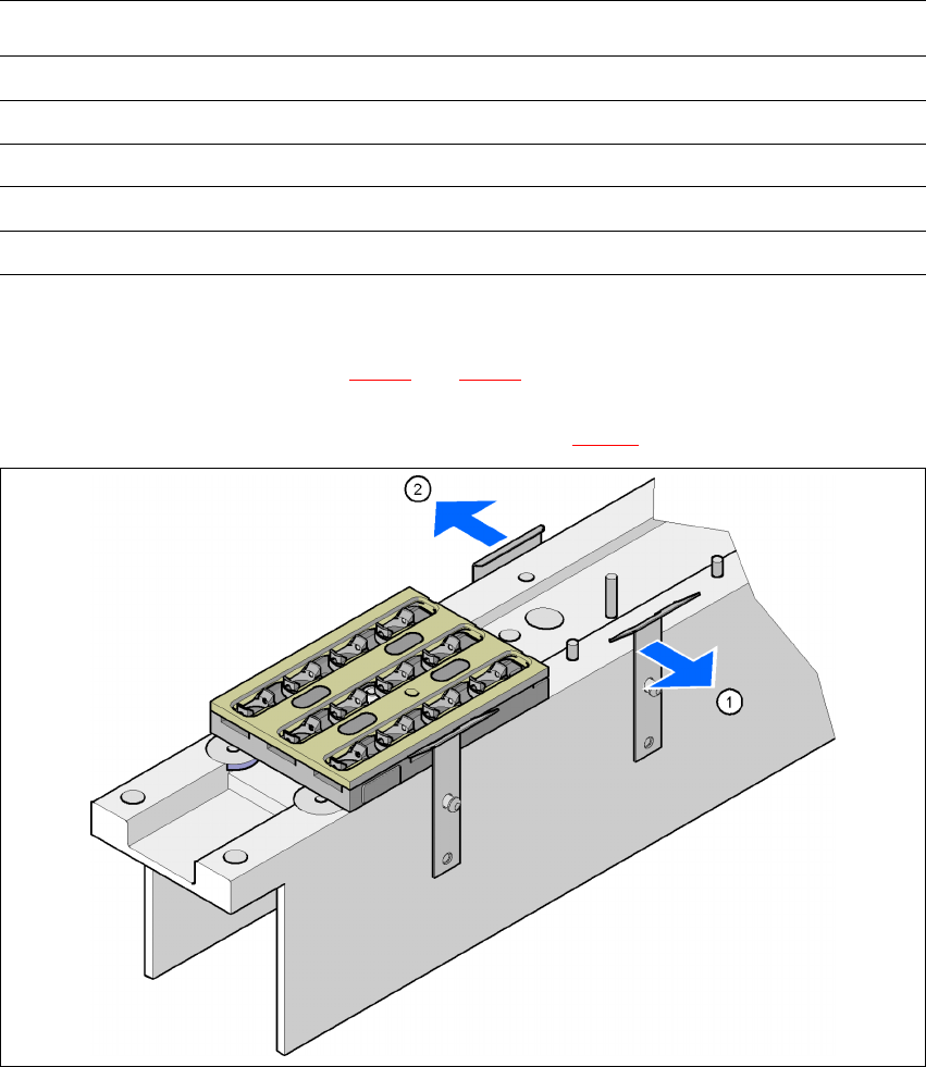– The locking plate (item 5 in Fig. 7.1 - 5) opens and releases the nozzle holders.