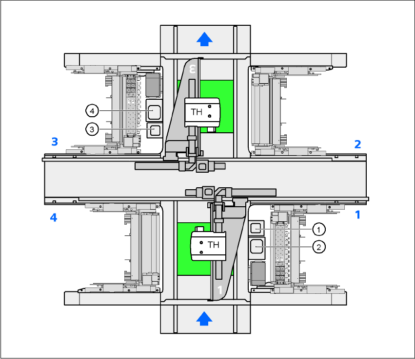 Fig. 7.3 - 2 Position of the component vision cameras for the TwinHead on the HF placement machine