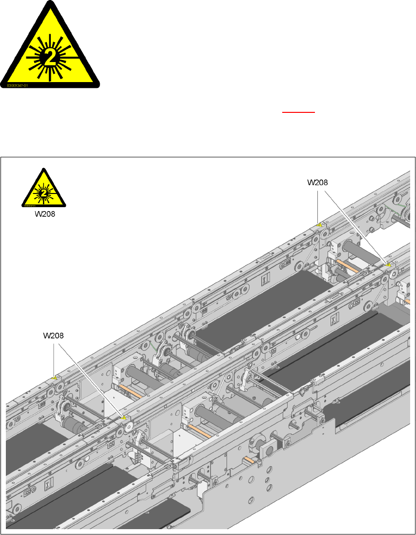 2.2.9 Warning label W208 "Laser class 2" on the PCB conveyor