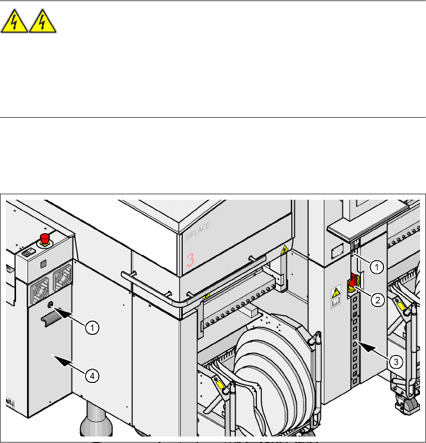 Æ The guards over the power supply unit and the axis unit must ONLY be opened by appropri-