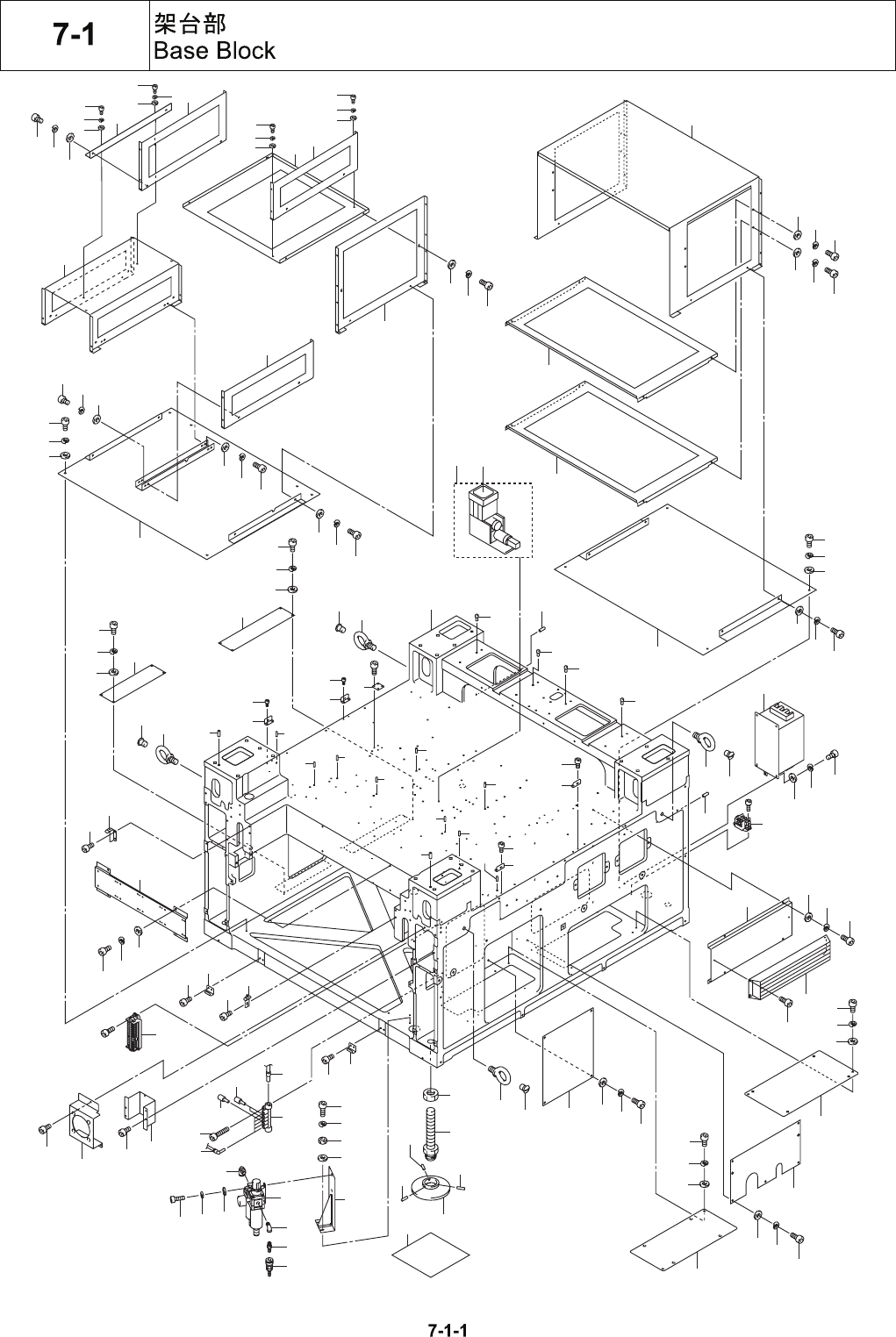 7-1 架台部 Base Block 7-1-2 イラスト番号 Ref.No. 部品コード Parts Code 部品名 Parts Name Serial No. 個数 Q’ty 備考 Remarks 同期 Repl. 1 4-125-742-01 PCユニットブラケット (2) PC UNIT BRACKET(2) 1 2 4-706-726-03 六角穴付きボルト HEX SOCKET HEAD CAP SCREW 43 C5*8…