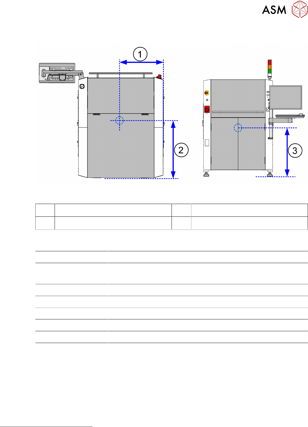 3 设备说明 3.2 技术数据 用户手册 ASM ProcessLens 03/2021 57 3.2.3 重心 图37: ASM ProcessLens 焊锡膏检测设备的重心 1 550 mm 2 610 mm 3 730 mm 3.2.4 电气额定值 电源电压 保险丝 主电源 1/N/PE 额定电流:110 V 1) - 9.1 A,240 V - 4.2 A,50/60Hz 2 x 15 A 功耗 1 kW 电源 100 ~ …
