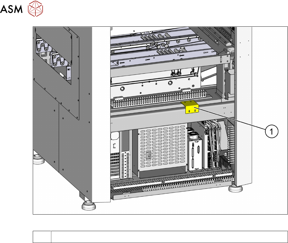 4 设置与调试 4.4 调试设备 用户手册 ASM ProcessLens 03/2021 77 图47: 装运支撑架的位置 - 设备的前方(第 2 部分) 1 装运支撑架 图48: 装运支撑架的位置 - 设备的前方(第 3 部分) 1 装运支撑架