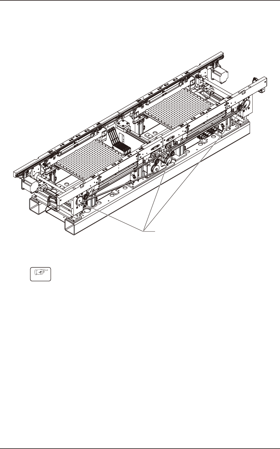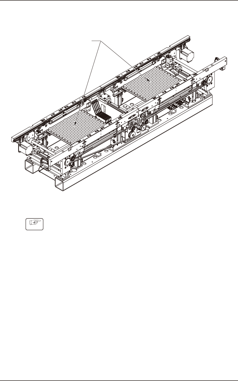 4OM-1732 1-4-43 121 1-002 4.9 线路板定位部 4.9.2 滚珠丝杠的清扫和注油 周期 : 每三个月 ( 所要时间 :10 分钟 ) 润滑油 :DAPHNEEPONEXGREASENo.1 滚珠丝杠 Fig.4A4-57 Procedure (1) 用棉纱擦去原有的润滑油。 (2) 请用注油器在螺钉轴上涂刷新的润滑油。