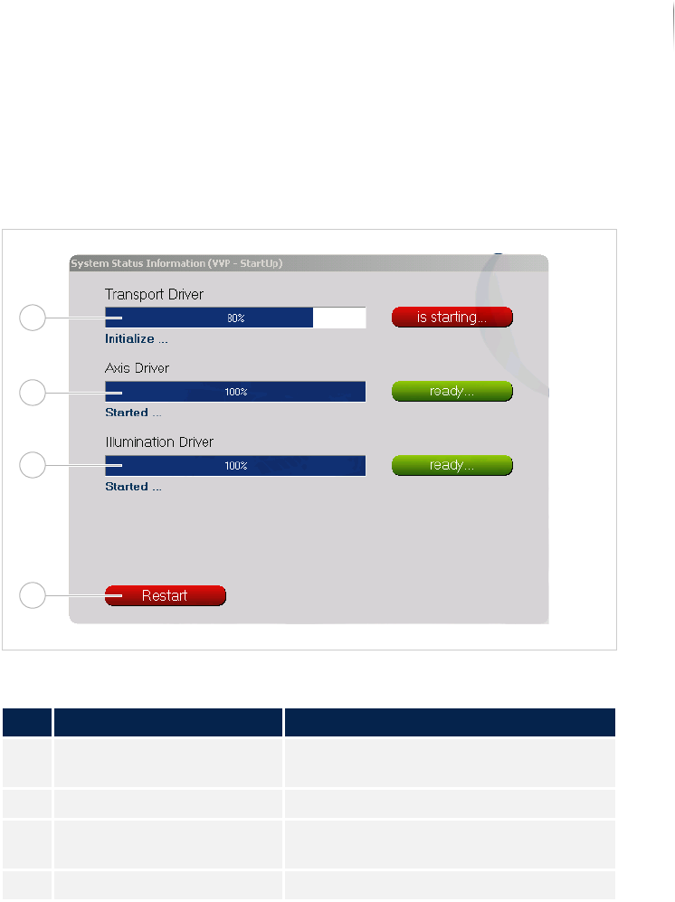 the status of the transport, axes and illumination drivers.