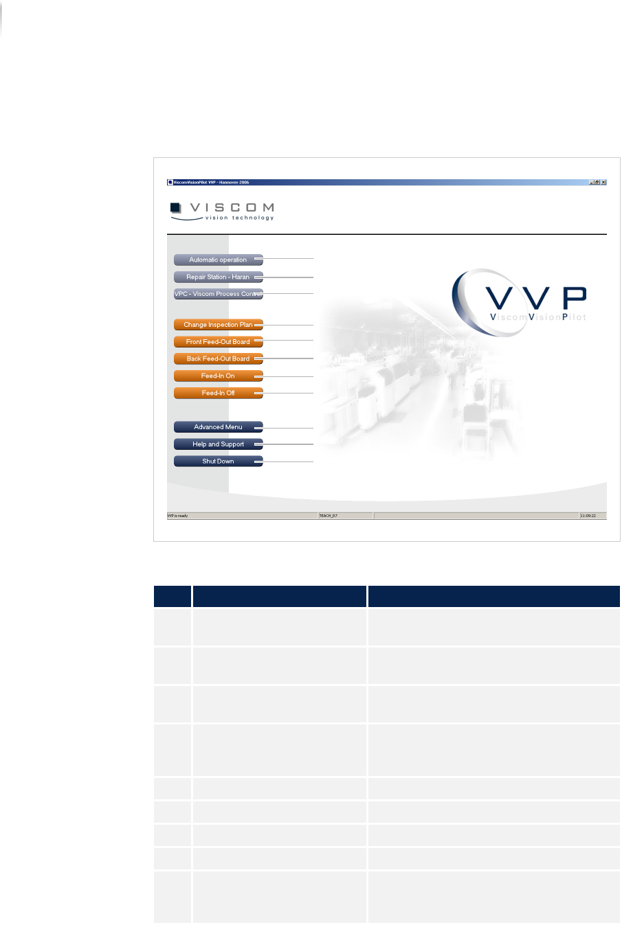 Software Viscom Vision Pi lot 111 Inspection system X7056 | Operating manual | Version 3.1 Rev.006| 2016-01-06 | 30.009.1930a System status information The S YSTEM STAT US INFORMAT ION window contains information about t…