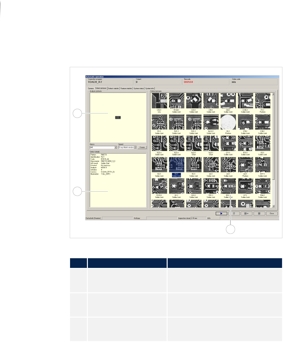 Software Automatic mo de 120 Inspection system X7056 | Operating manual | Version 3.1 Rev.006| 2016-01-06 | 30.009.1930a Defect images This tab monitors the current insp ection and cont ains the f ollowing elements: File…