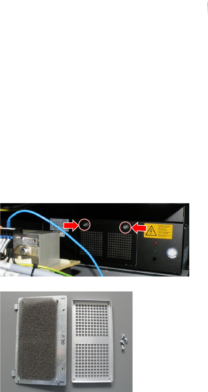 Maintena nce Exchanging filter mat on AOI system computer 224 Inspection system X7056 | Operating manual | Version 3.1 Rev.006| 2016-01-06 | 30.009.1930a 5. T ake out the filter mat and ev aluate it: For minimal contam…