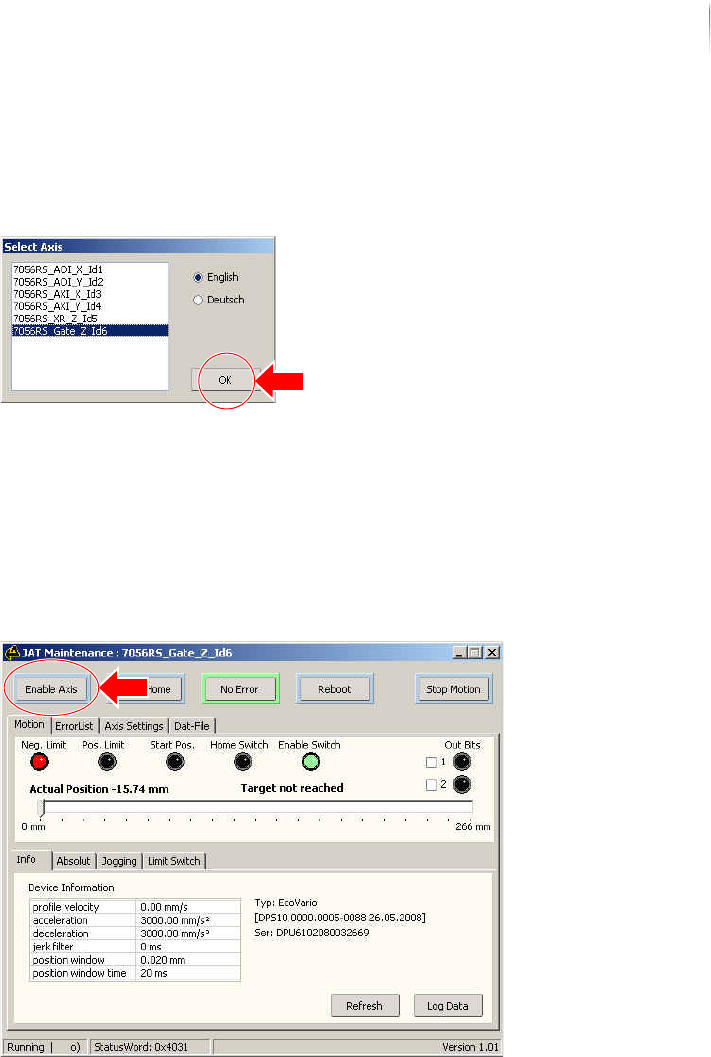 Installation First use 96 Inspection system X7056 | Operating manual | Version 3.1 Rev.006| 2016-01-06 | 30.009.1930a 8. Then, select S TART H OME . A reference run is made. After the referencing is complete, the S T…