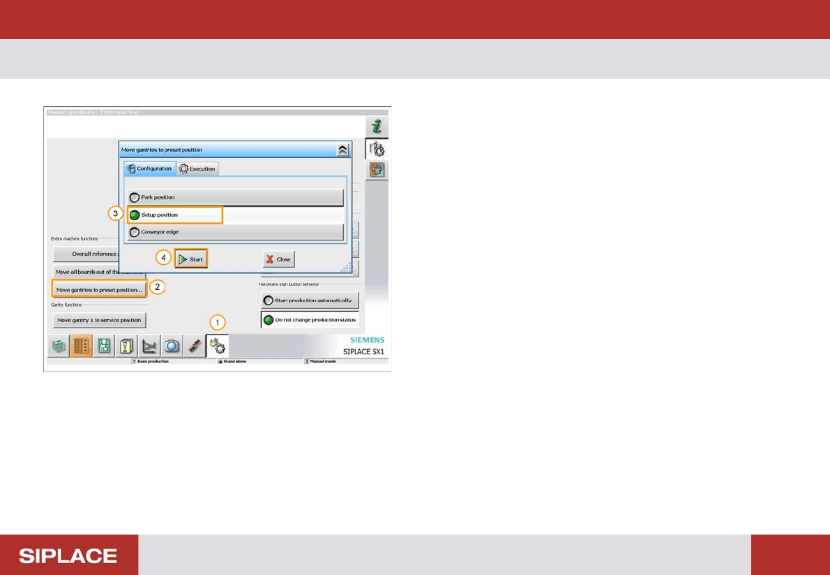 Weekly PM (70x) - Move the gantry to a safe position. : 176 Move the gantr y to a safe positi on. 1. Select ‘M anual Operatio ns’ window. 2. Click ‘Move gantries t o preset position… ’ 3. Click ‘Setup position’. 4. Click…