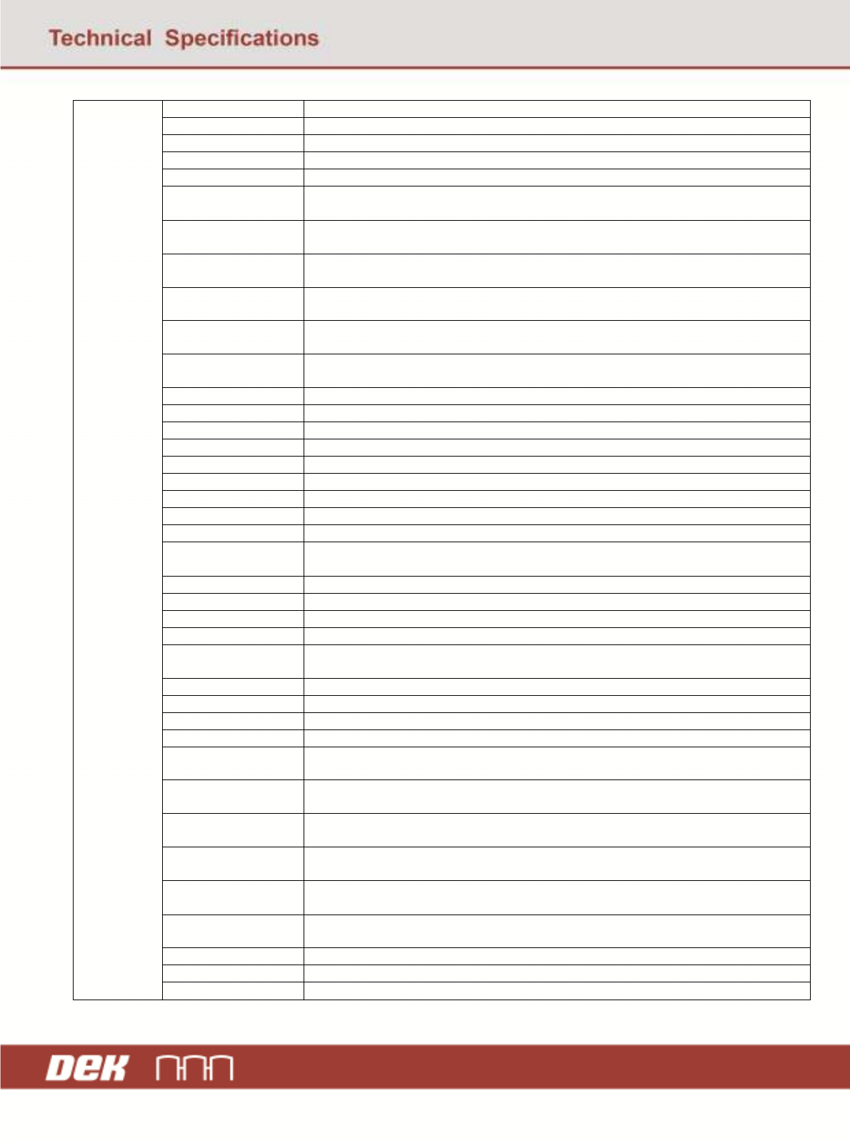 GEM Manual for DEK Printers Equipment Variables Issue 1.6 January 22, 2018 Page 121 of 171 SPC X Pre Align Dev Deviation in the x axis for the pre p rint alignment Y Pre Align Dev Deviation in the y axis for the pre pr i…