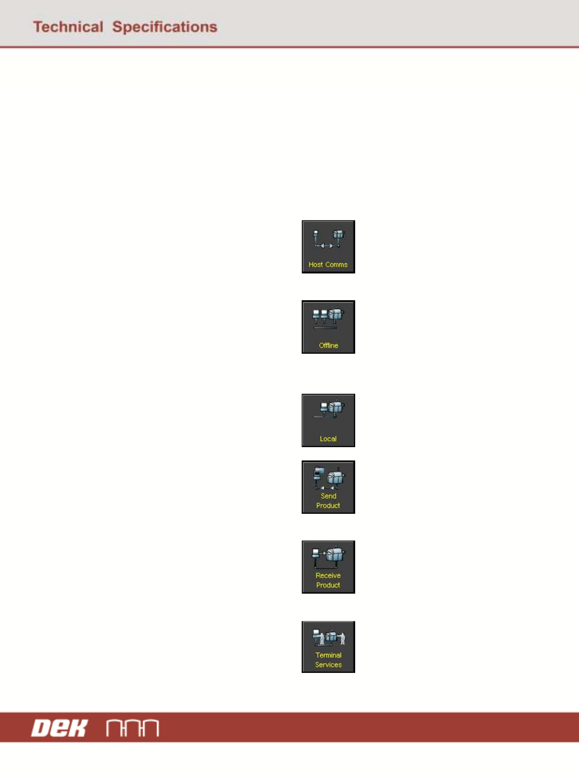GEM Manual for DEK Printers Ap pendix B Issue 1.6 January 22, 2018 Page 167 of 171 11.3 Using GEM Once enabled and communicating with a host, the operator can perform the following functions: 1. Switch between online and…