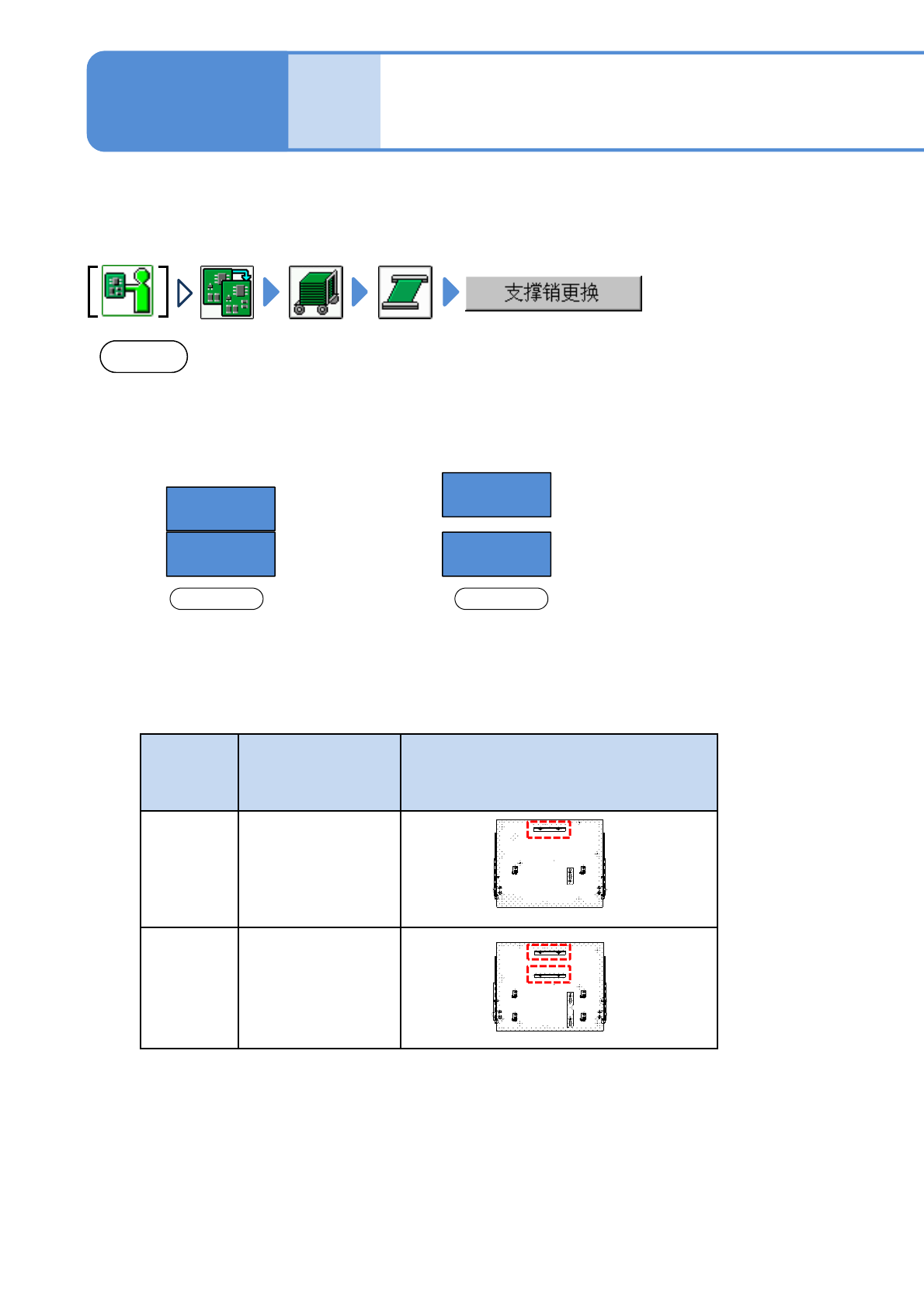 ●清扫基板支撑块时,请同时确认支撑销的状态。(如果支撑销尖端部留有助焊剂时,请使用棉纱布擦