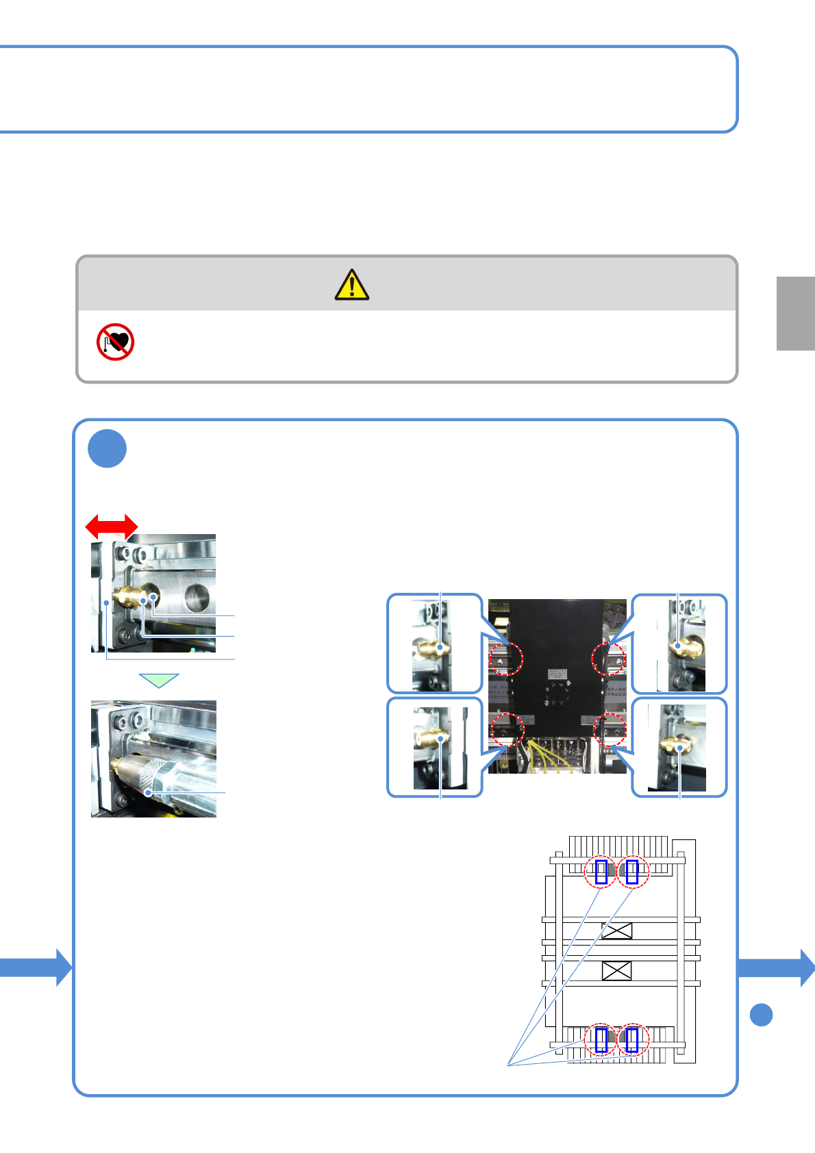 NPM-D3 EJM6DC-MB-06M-02 6-3 -2 顺序 警告 使用心脏起搏器的人员请勿靠近直线马达部 (由于磁力造成错误动作,可能受伤) 每 5 6 0 小 时 保 养 定 期 检 查 8 对 X 轴线性导轨添加润滑脂 ●按照以下顺序,从上下 4 处润滑脂注入口进 行润滑脂添加。 ①压出 1/4 。 ( 约 0.25 cm 3 ) ②使 X 轴移动约 100 mm 。 ③压出 1/4 。 ( 约 0.25 cm 3 ) ●使…